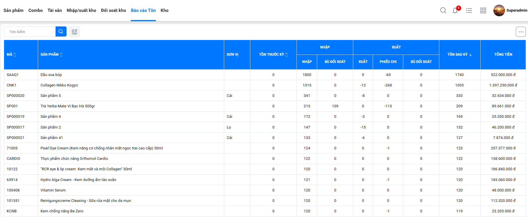Báo cáo chi tiết về số lượng nhập – xuất, tồn kho qua các bảng biểu và phần mềm quản lý Xspa được cập nhật liên tục sẽ giúp chủ spa dễ dàng nắm bắt tình hình kho nguyên liệu từng ngày, từng tuần hoặc tháng.