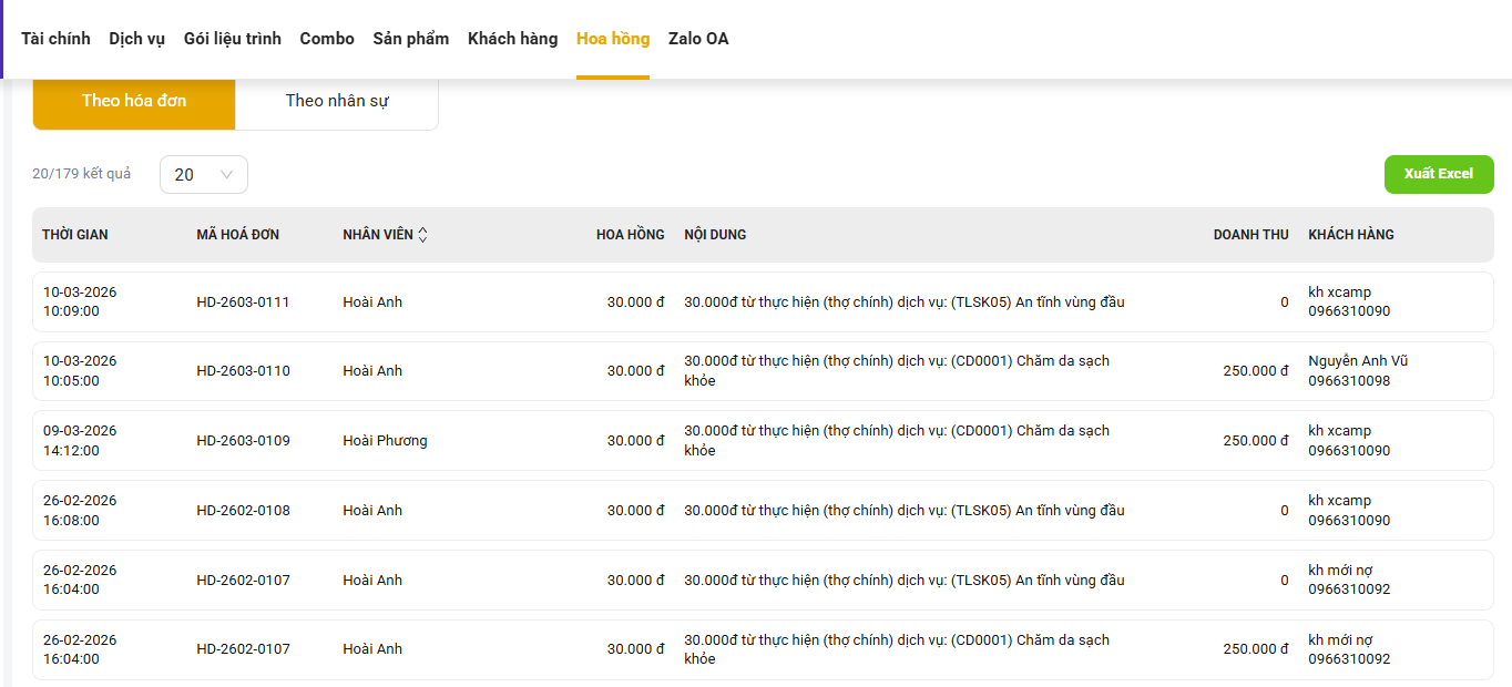 Với Xspa, quản lý nhân sự trở nên linh hoạt và chính xác hơn nhờ danh sách chi tiết, bảng chấm công và phân công nhiệm vụ tự động. Chủ spa có thể dễ dàng điều phối ca làm việc, theo dõi thời gian làm việc thực tế và đánh giá hiệu quả của từng nhân viên qua hệ thống báo cáo trực quan.